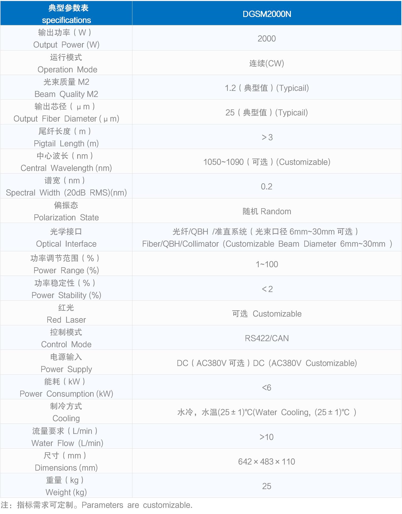 可實現(xiàn)2kW輸出激光的光譜帶寬(20dBRMS)小于0.2nm,中心波長1050nm~1090nm可選,中心波長偏差不大于0.1nm,可滿足光譜合成等應(yīng)用。